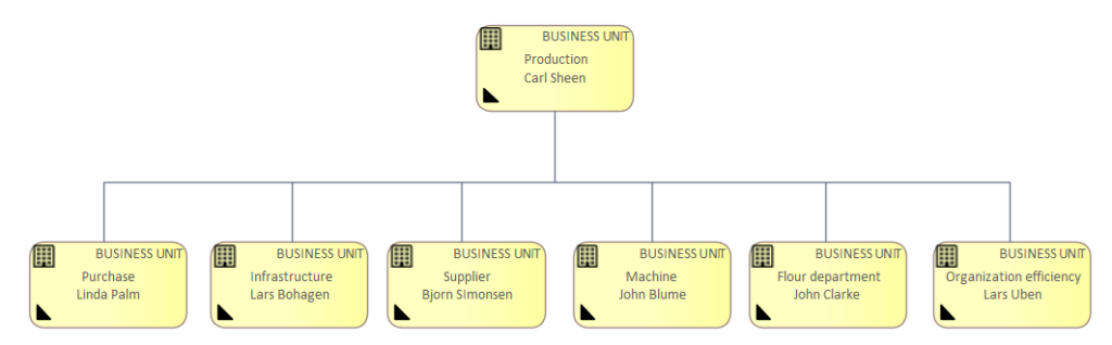 Within the Business architecture we document how the organization itself does its work and is structured. Here we find business processes, competences, business actors, roles and the business unit structure.