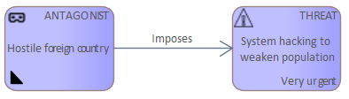 During the strategy work drivers, such as threats, are modeled together with their origins, modeled as antagonists.